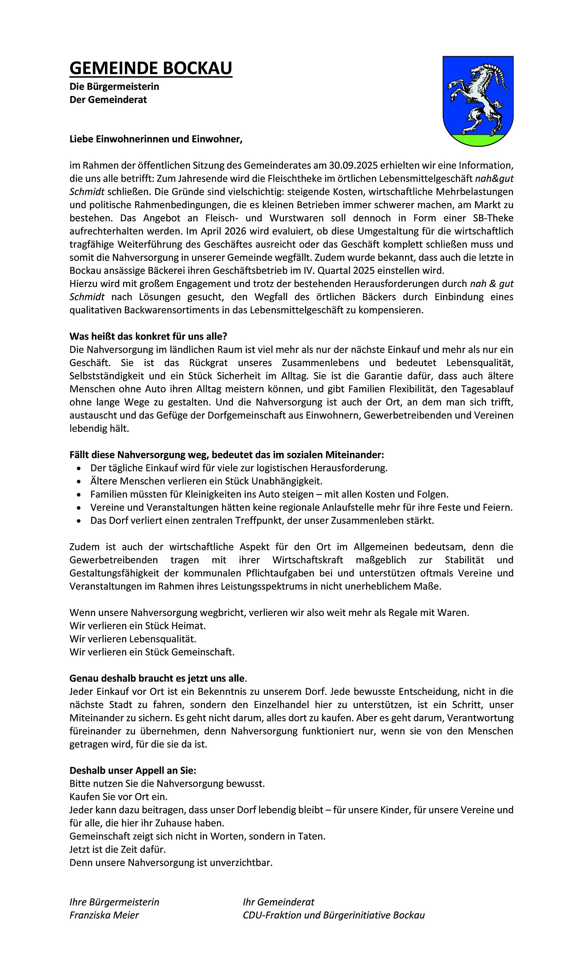 In unserem zentral gelegenen Gemeindeamt finden Sie noch weitere Informationen zu unserem Ort und können sich ebenso zur Blütezeit im angrenzenden Kräutergarten über die zahlreichen Kräuter- und Heilpflanzen erkundigen. Gerne stehen wir Ihnen als Team des Bockauer Gemeindeamtes Rede und Antwort und informieren Sie über die zahlreichen Aktivitäten in unserer Gemeinde.